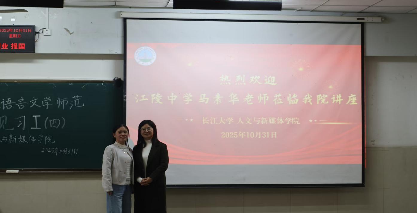 (通讯员彭迪)为夯实师范生教育教学基本功,提升教学技能,我院于2025年10月31日下午在东校区12教102举行了2023级中文师范专业教育见习第四次讲座。本次活动特邀湖北省江陵中学高级教师马素华,作题为《从“教课文”到“育素养”:新课标背景下〈劝学〉的深度备课策略》的专题分享。讲座由章芳老师主持,张丽老师、周霜老师及2023级全体中文师范生参加。