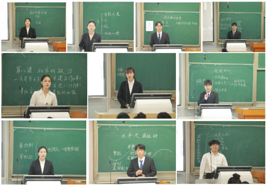 本次竞赛以模拟授课为核心环节,选手们精心设计教案、制作PPT课件,模拟授课限时10分钟,围绕历史课程标准,在情境创设、问题设计、史料运用、核心素养落地等方面各展所长。选手们或注重教学设计的严谨性、生动性,有的注重互动引导,巧妙融入AI教学元素,或紧扣育人目标,精彩纷呈。全体选手精神饱满、功底扎实,充分展现了历史系师范生良好的专业素养与教师风范。