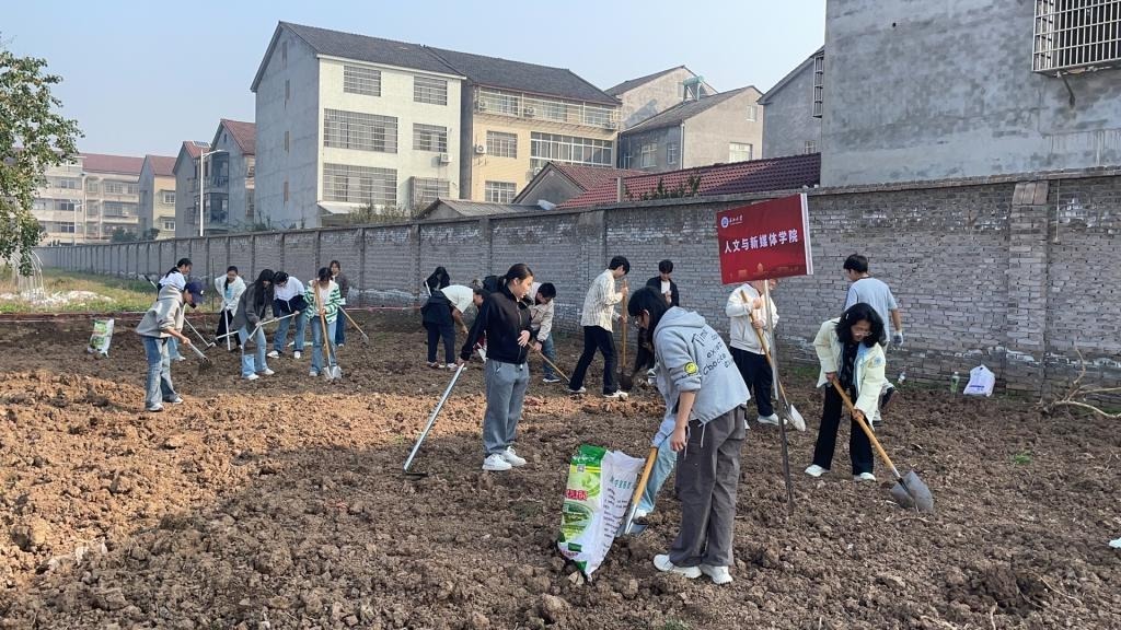 11月4日,同学们前往劳动教育实践基地参与农耕。在农技人员指导下,大家挥锄翻土、打碎土块、平整田垄,在劳作中体会农耕艰辛与 “粒粒皆辛苦”的含义,同时掌握基础农耕技能。