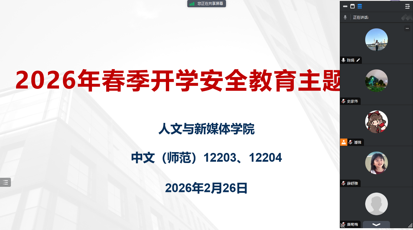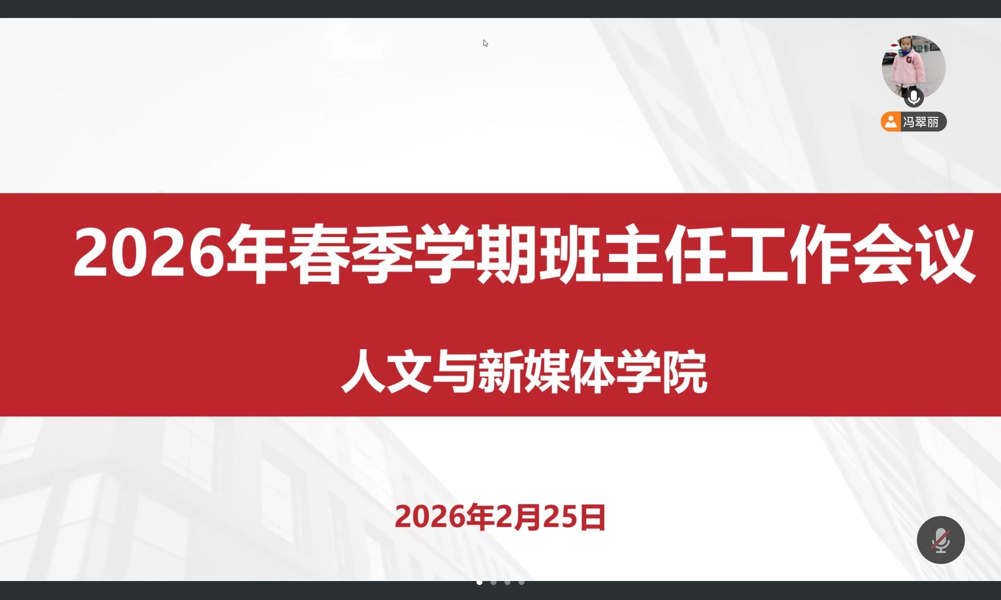 为切实做好 2026 年春季开学各项工作,筑牢校园安全防线,在2月26日前,人文与新媒体学院先后组织召开春季开学班主任和辅导员工作专题会议、全院线上返校安全教育班会,层层压实工作责任,全方位做好开学准备。