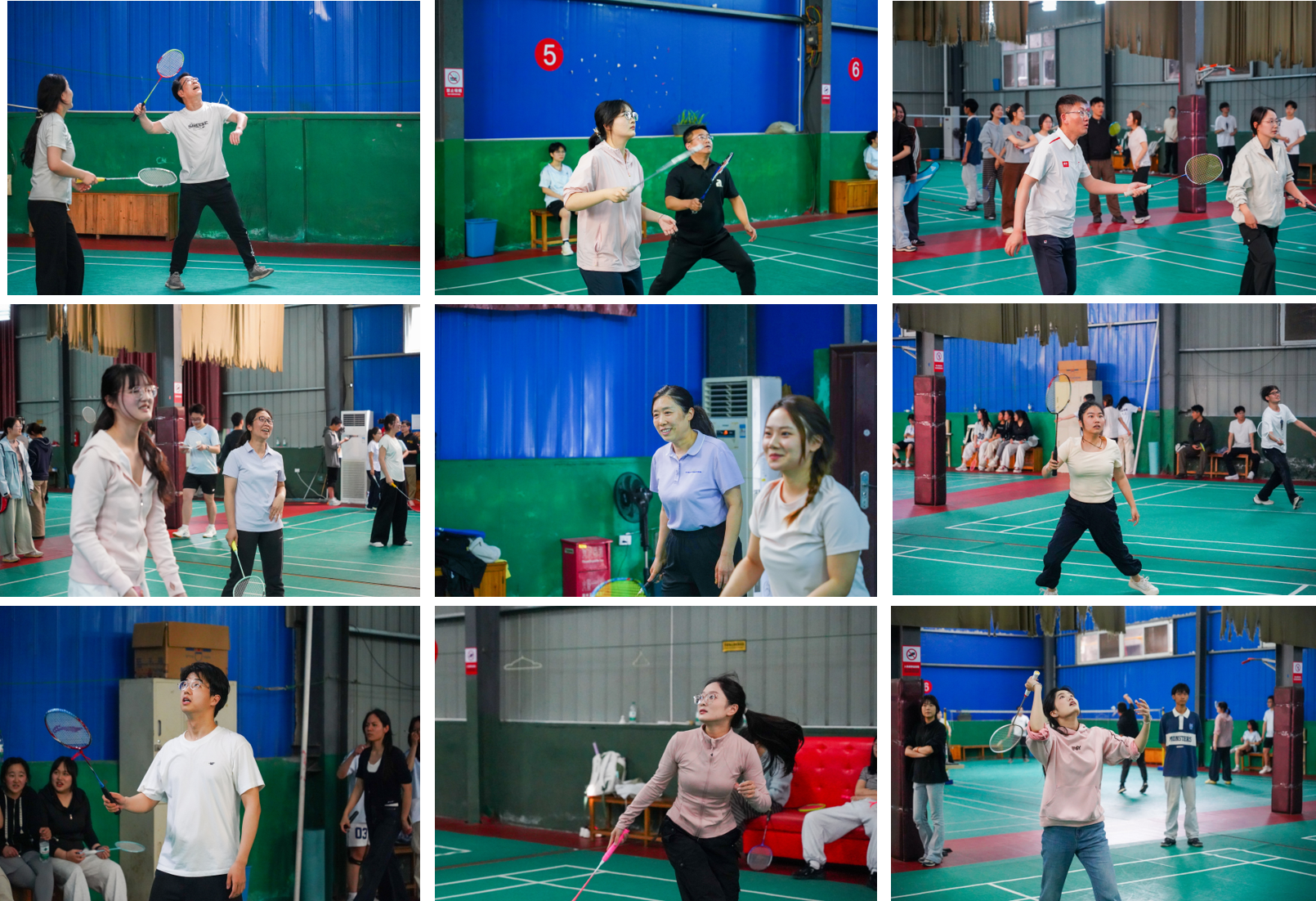 本次比赛设有男子单打、女子单打及师生混合双打三个项目。赛场上,师生们精神饱满、步伐敏捷,高远吊球、凌厉扣杀、网前攻防轮番上演,竞技氛围浓厚。老师们沉着稳健、球技娴熟,尽显从容风范;同学们则朝气蓬勃、敢打敢拼,充分展现奋进姿态。在师生混合双打环节,搭档之间配合默契,战术意图明确,既彰显了竞技体育的对抗魅力,更传递出师生间互帮互助、并肩协作的温暖情谊。场边助威声、欢呼声、掌声此起彼伏,现场氛围热烈融洽。