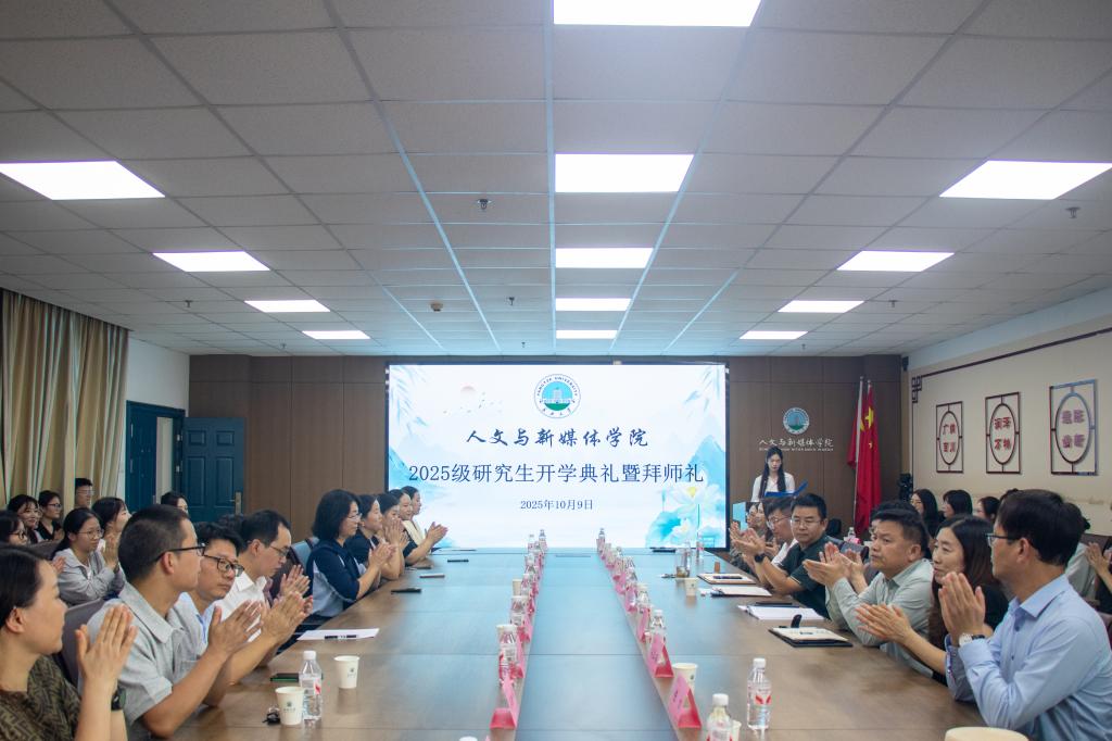 (通讯员 明艳芳 胡雪芬)尊师重道承薪火,凝心聚力启新程。10月9日下午,人文与新媒体学院2025级研究生新生开学典礼暨拜师仪式在文科楼705会议室隆重举行。学院领导、2025级硕士生导师及全体研究生新生共同完成了这场庄重而温馨的仪式。